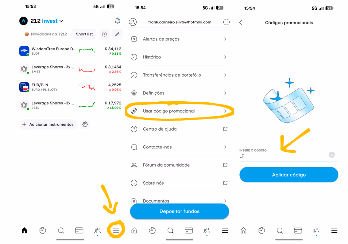 Se preferires, podes ver aqui todos os detalhes do promo code da Trading 212 (incluindo um vídeo sobre como abrir conta - em inglês).