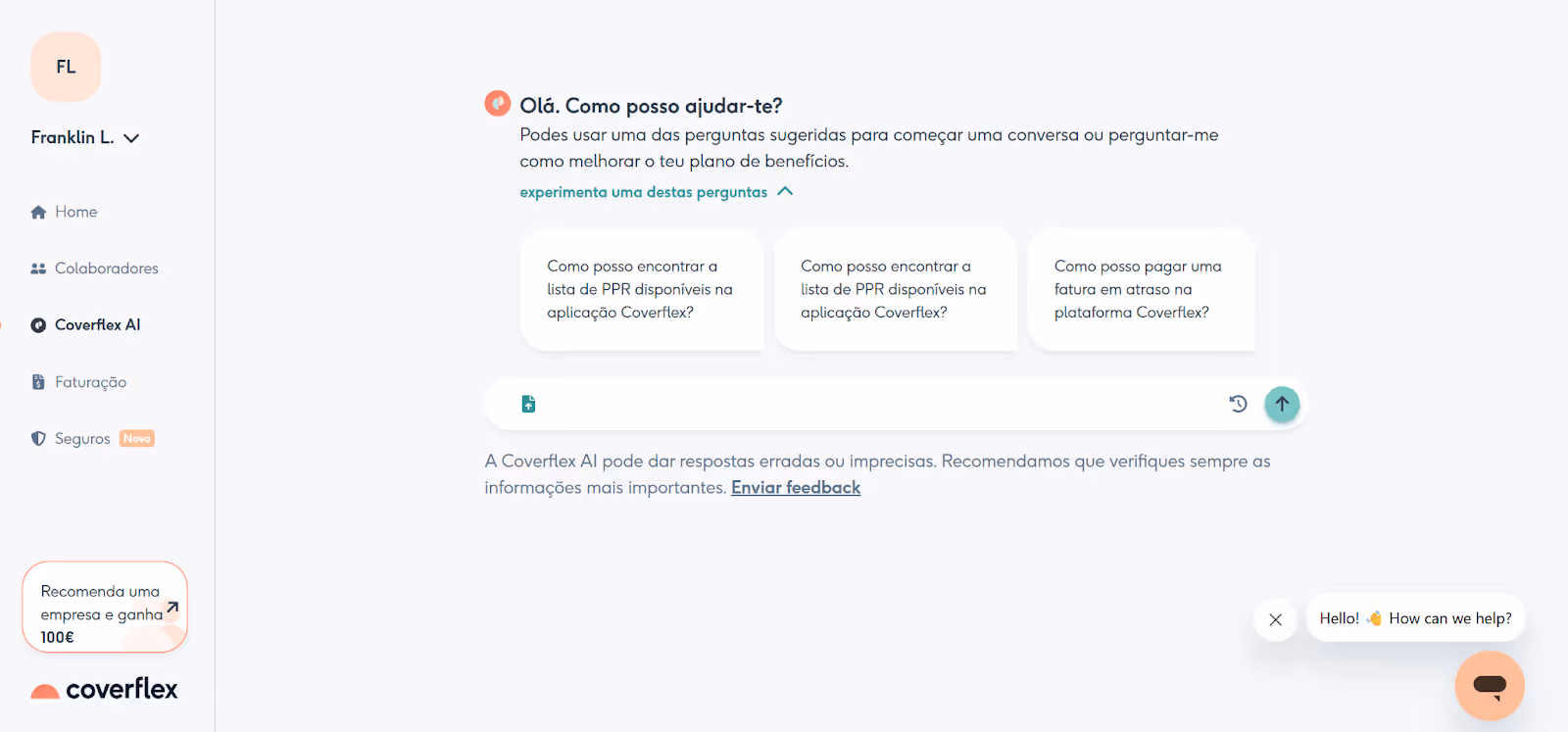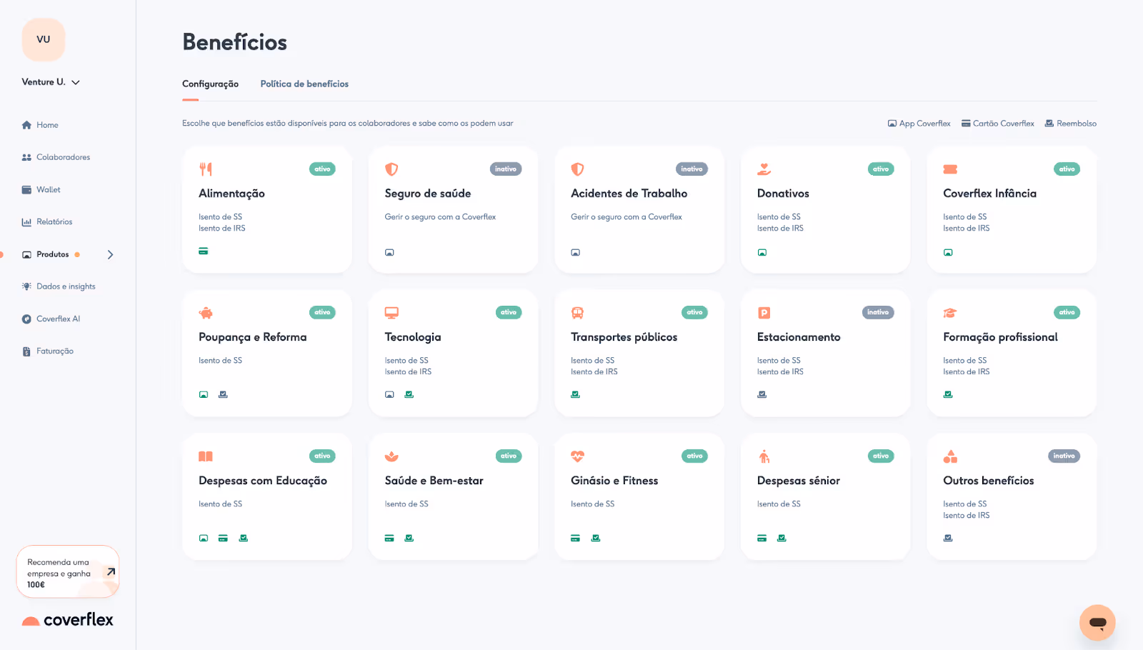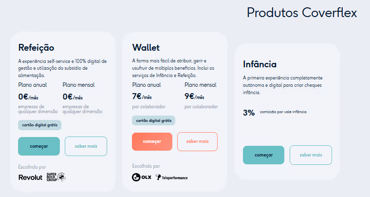 🎁 Queres abrir conta na Coverflex para os teus colaboradores? Aproveita o nosso link de referência (ou o nosso código de referral "uBxKO7QO"), e recebe 100€ de recompensa quando te tornares cliente. Nós também recebemos esse bónus. Win-win!