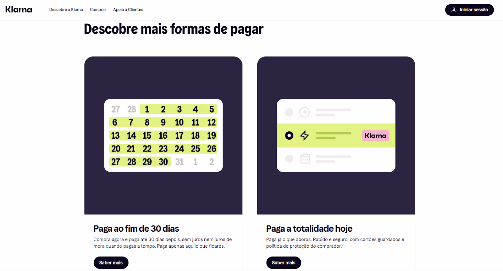 Nota: Caso sejas um comerciante e queiras saber mais sobre como a Klarna te pode ajudar, consulta esta página.
