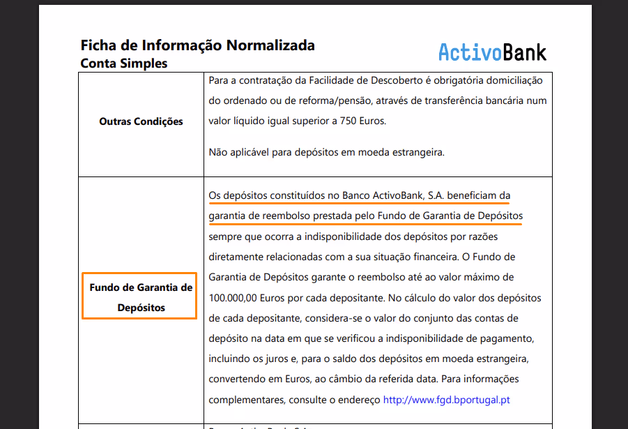 Vamos então utilizar o ActivoBank, um dos bancos participantes no FGD e um dos melhores bancos digitais, e procurar informação da sua “Conta Simples”, uma conta/depósito à ordem oferecida por essa instituição bancária.