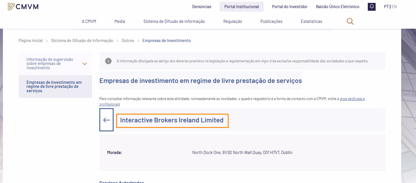 Como português, abres conta através da subsidiária “Interactive Brokers Ireland Limited” que é regulada pelo Banco Central da Irlanda (BCI).