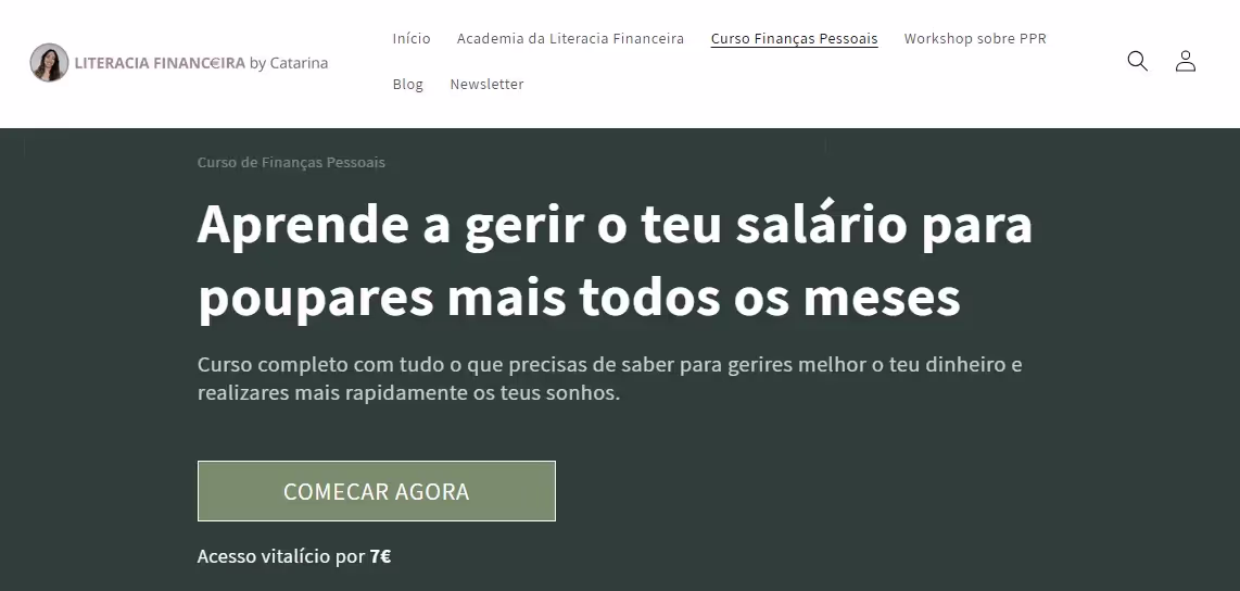Uma iniciativa gratuita do Plano Nacional de Formação Financeira, onde podes aprender sobre orçamento familiar, poupança, crédito e seguros através de módulos de e-learning. É ideal para adquirires conhecimentos financeiros essenciais.