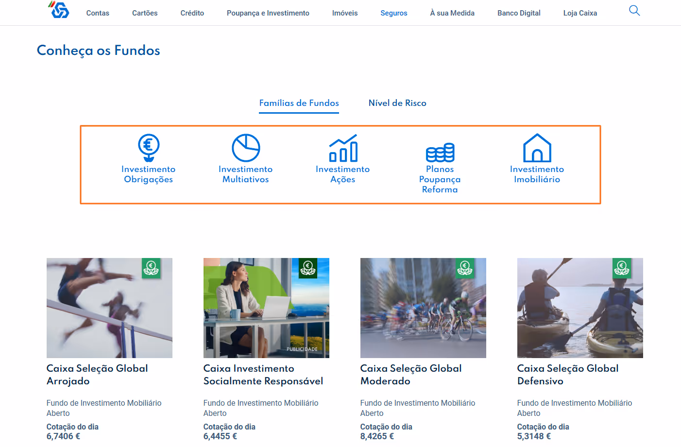 A Caixa Geral de Depósitos (CGD), o maior banco português, tem uma “Família de Fundos” que incluem: