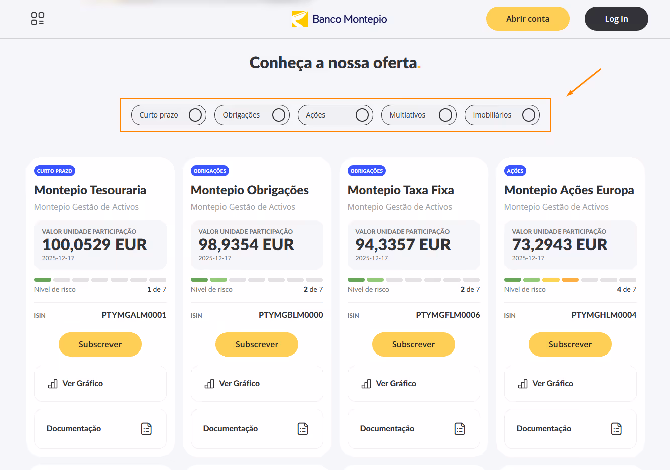 O Banco Montepio, instituição financeira de base mutualista em Portugal, também disponibiliza uma gama de fundos de investimento, nomeadamente: