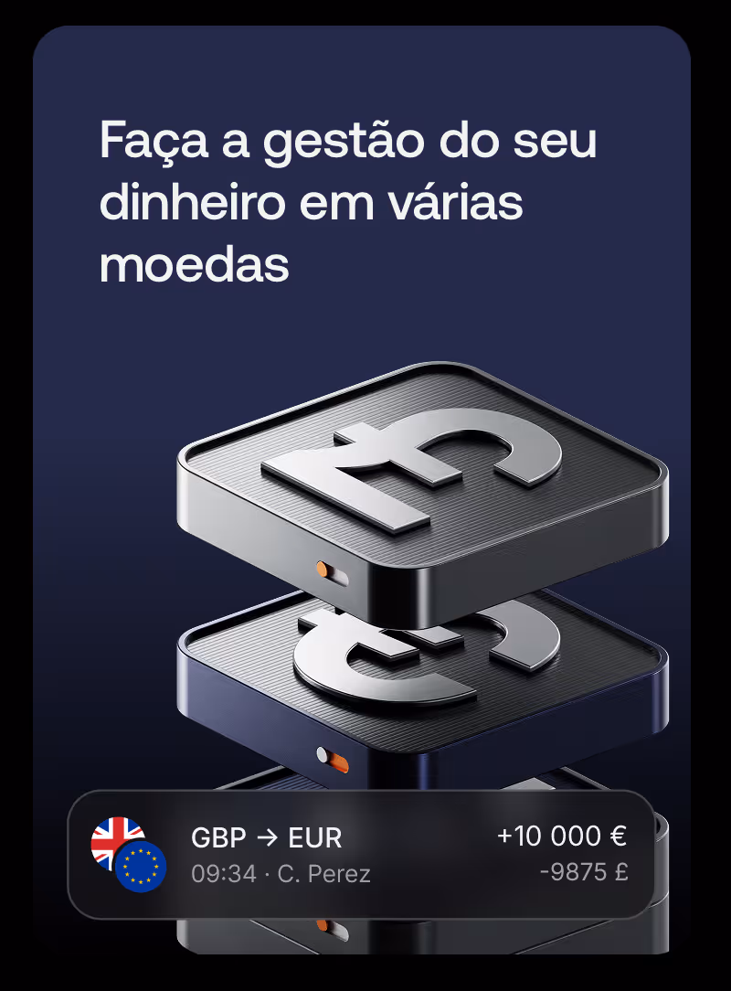 - Conta em várias moedas com conversões cambiais competitivas, pode ser ideal para quem recebe ou faz pagamentos noutras moedas